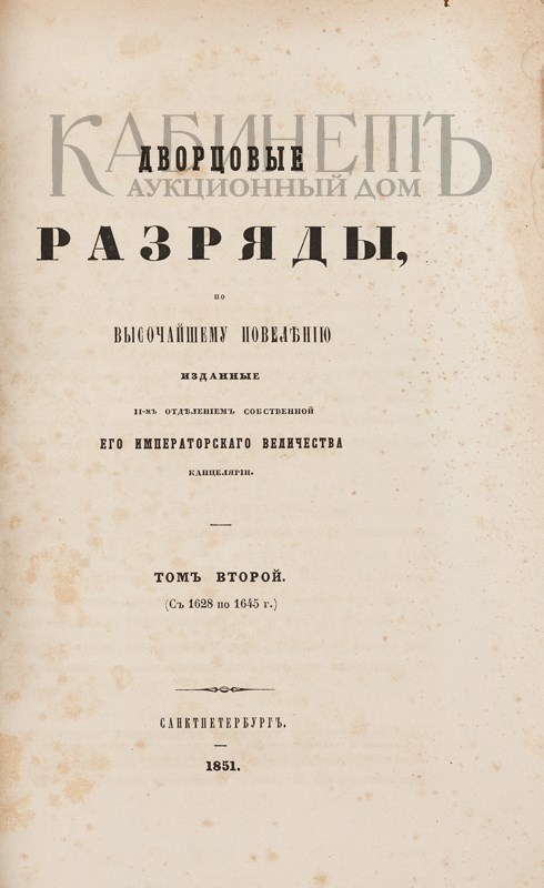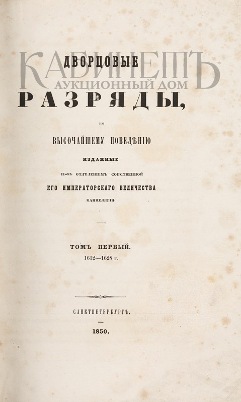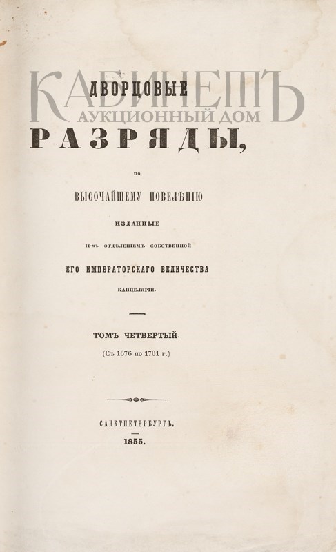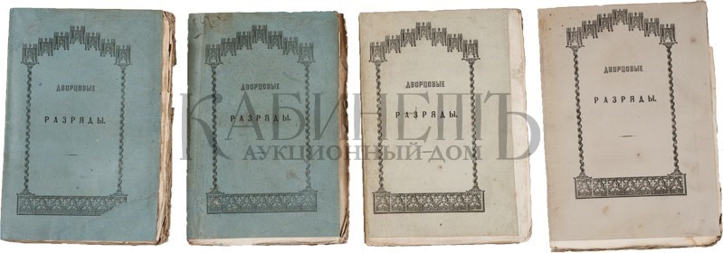 Дворцовые разряды, по высочайшему повелению изданные II-м Отделением Собственной Его Императорского Величества канцелярии. В 4-х томах. СПб., в Типографии II Отделения Собственной Его Императорского Величества Канцелярии, 1850–1855.