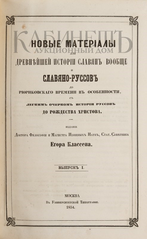Новые материалы для древнейшей истории славян вообще и славяно-руссов до рюриковского времени в особенности, с легким очерком истории руссов до Рождества Христова. В 3-х выпусках. М., в Университетской типографии, 1854-1861.