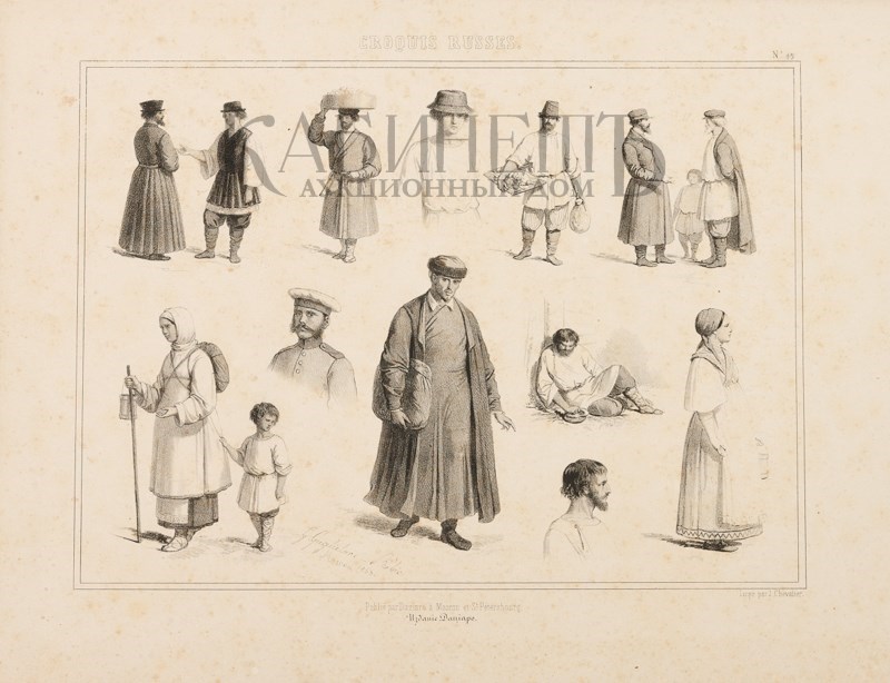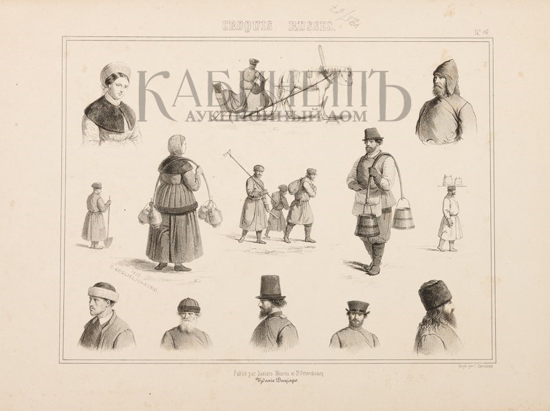 1) «Русские типажи». Лист №15. Литография. М. – Л., издание Дациаро. Печатник J. Chevalier, 1853.