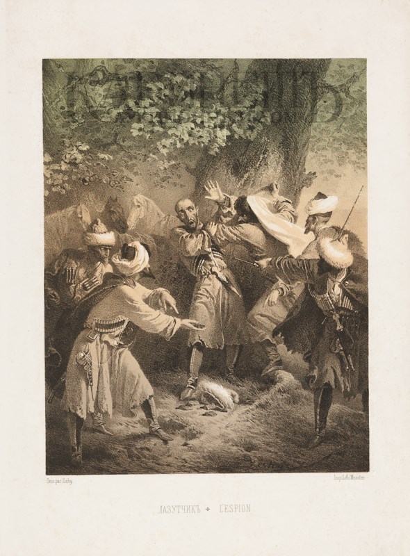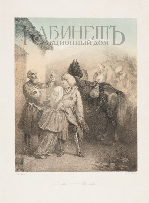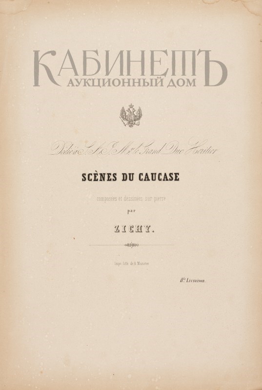 Dedie a T. A. P. M gr Le Grand Duc Heritier. Scenes du Caucase. Composees et dessinees sur pierre par Zichy. I de livraison. Impr. Lith: a de Munster, 1853. [Зичи М. Сюита. Кавказские сцены. Литографии на камне. СПб., литография Мюнстра, 1853].