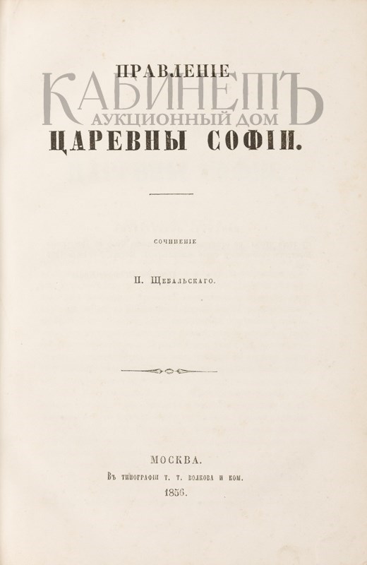 Щебальский П.К. Правление царевны Софии. М., тип. Т.Т. Волкова и К°, 1856.
