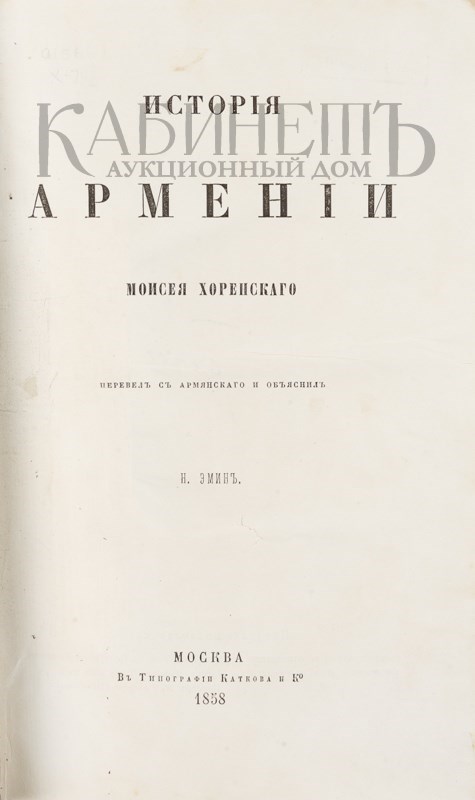 Мовсес Хоренаци. История Армении Моисея Хоренского. Перевел с армянского и объяснил Н. Эмин. М., тип. Каткова и К°, 1858.