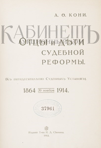 Юбилейное издание известного русского юриста и общественного деятеля Анатолия Федоровича Кони (1844–1927).