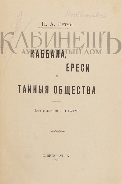 Бутми Н.А. Каббала, ереси и тайные общества / Под ред. Г.В. Бутми. СПб., тип. т-ва А.С. Суворина – «Новое время», 1914.