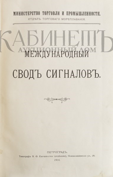 Международный свод сигналов. Издание Министерства торговли и промышленности. Пг., типография В.Ф. Киршбаума, 1914.