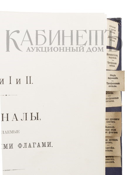Международный свод сигналов был создан в середине XIX в. (1855 г.) сотрудниками Министерства торговли Великобритании для связи между кораблями и их командами с целью безопасного мореплавания и охраны человеческой жизни на море, особенно в тех случаях, когда возникают языковые барьеры. В этом своде насчитывалось 70 тысяч сигналов, 18 флагов и использовалось общепринятые и международные сигналы. Он был издан в 1857 г. Этот свод применялся большинством морских государств. В нем была разработана иерархия сигналов по значимости: наиболее срочные, важные или часто употребляемые сообщения строились на однобуквенных сигналах. Общий раздел составляли двухбуквенные сигналы, а медицинский - из трехбуквенных. Каждый сигнал Свода имеет завершенное смысловое значение. С целью расширения значения основного сигнала использовались цифровые дополнения. Представленный в издании Международный свод сигналов включал в себя три части. Две первые отведены сигналам, подаваемым с помощью флагов. В цветных хромо-литографированных таблицах приводятся морские флаги всех государств, имевших собственный флот, а также флаги, формирующие международный сигнальный алфавит, в котором флаг определенной формы и рисунка обозначал, с одной стороны, одну букву, а с другой - сообщение или команду. В тематически разделенных таблицах приводятся команды и сообщения, обозначавшиеся сочетанием определенных букв. В третьей части опубликованы семафорные сигналы, сигналы, передаваемые при помощи света, звука и флажков, азбуки Морзе. Рассмотрены правила подачи сигналов, особенно тех, которые использовались во избежание столкновения судов. Помимо английских систем сигнализации, изучены русская, французская и немецкая системы сигналов при помощи рук и флажков. Книга имела большое практическое значение, она должна была находиться на каждом судне, отправляющемся в международное плавание. А, следовательно, ее экземпляры зачитывались и гибли. В коллекционной сохранности издание встречается редко.