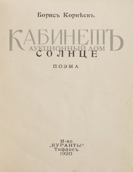 Конеев Б. Солнце. Поэма. Тифлис, «Куранты», 1920.