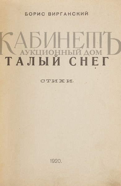 Вирганский Б. Талый снег. Стихи. Пенза, печатано в типографии Пензенского Совета Народного хозяйства, Пензенское отделение «Центропечати», 1920.