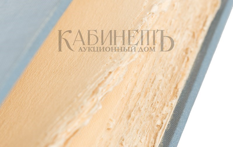 Экземпляр в старинном комбинированном переплете, пергаментный корешок с золотым тиснением, тканевые крышки, золотая головка. Потертости на углах переплета, корешок подмочен, утрата 1 кальки перед иллюстрацией. На форзаце расположен гравированный экслибрис: «Ex libris Аркадий Луценко».