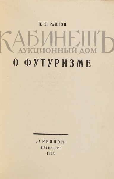 Радлов Н. О футуризме и пр. Пг., Аквилон, 1923.
