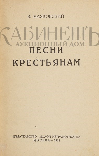 Маяковский В. Песни крестьянам. [Стихотворения]. М., издательство «Долой неграмотность», 1925.