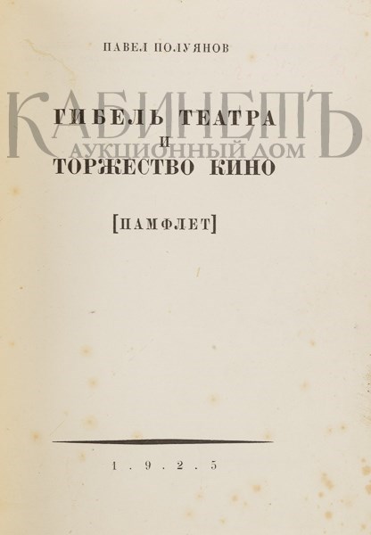 Полуянов П. , Ильин Н. Гибель театра и торжество кино. [Памфлет]. Нижний Новгород, издание автора, Нижполиграф, 1925