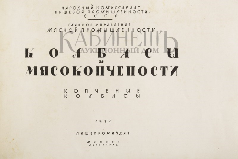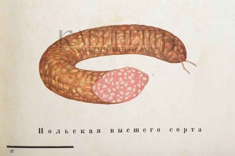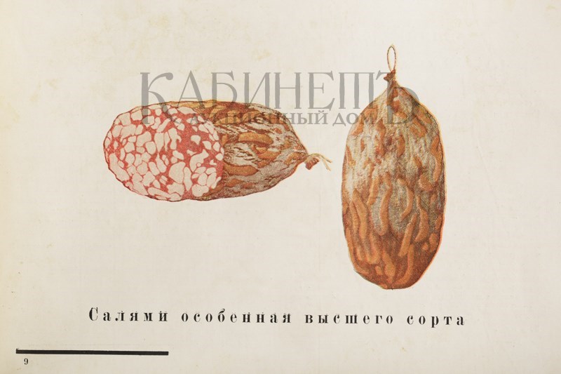 В издании содержится рецептура и способы изготовления 20 сортов колбас, текст сопровождается цветными иллюстрациями. Настоящее издание не вошло в справочную книгу-альбом М. Карасика «Парадная книга страны советов» (2007), где описано более позднее издание 1938 года.