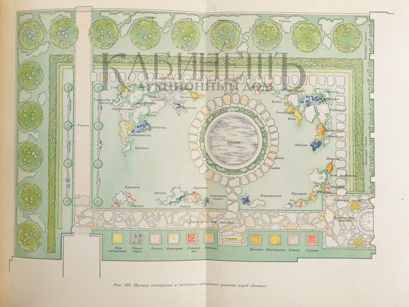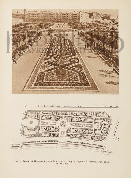 Многочисленные иллюстрации с видами ландшафтных дизайнов парков, скверов, площадей в Москве, Одессе, Баку и других городах и схемы с проектами озеленения.