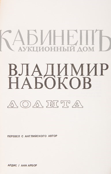 Набоков В. Лолита. Перевел с английского автор. Анн Арбор, Ардис, 1967.
