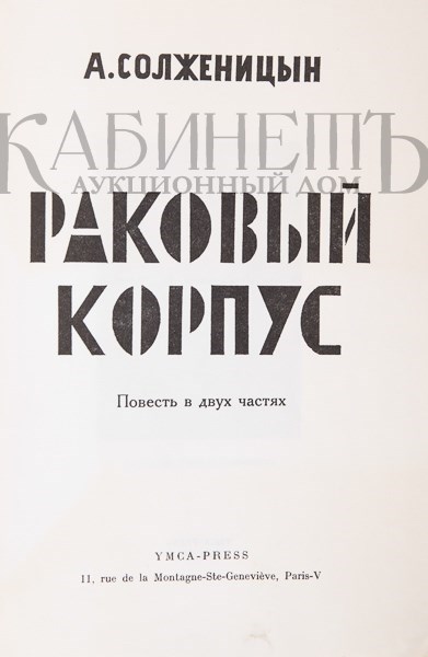 Солженицын А. Раковый корпус. Повесть в двух частях. Париж, YMCA-PRESS, 1968.