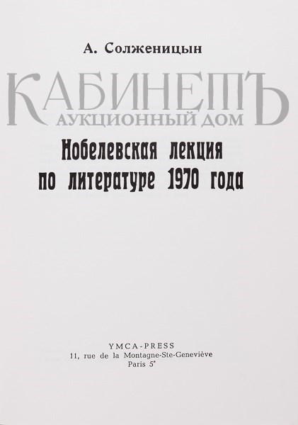 Подборка из 2-х предметов: 1) Солженицын А. Нобелевская лекция по литературе 1970 года. Париж, YMCA-PRESS, 1972. 2) Фотография А.И. Солженицына на пресс-конференции в Цюрихе 19 ноября 1974 г.