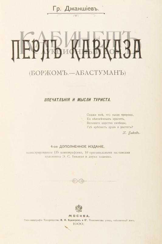 Экземпляр в издательском полукожаном переплете со следами золотого тиснения по корешку и крышке. Сильные потертости корешка и кожаных уголков. Загиб уголков нескольких страниц. Загрязнение нижнего правого угла титульного листа.