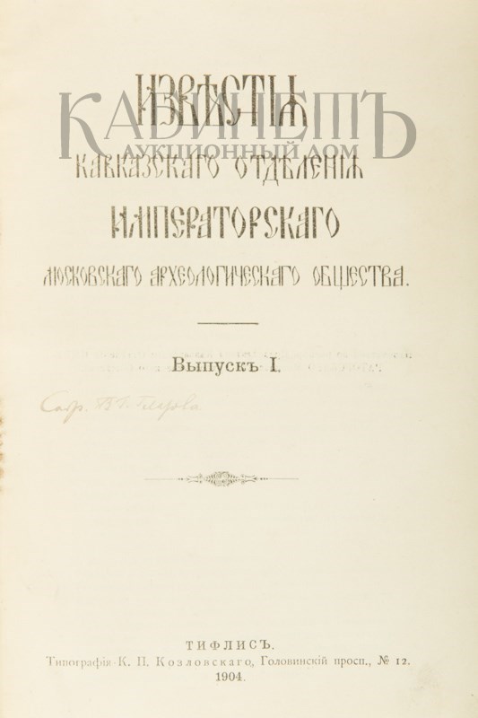 Известия Кавказского отделения Императорского Московского археологического общества. Выпуск I [из 4-х выпусков]. Тифлис, типография К.П. Козловского, 1904-1915.