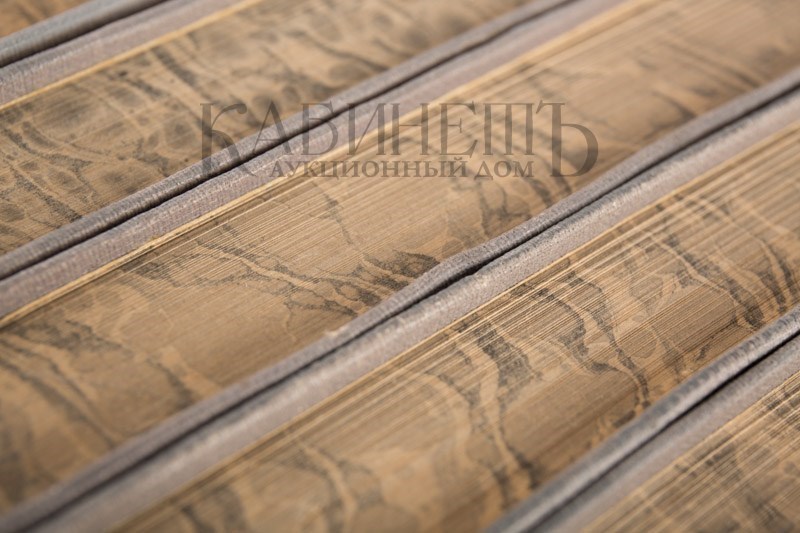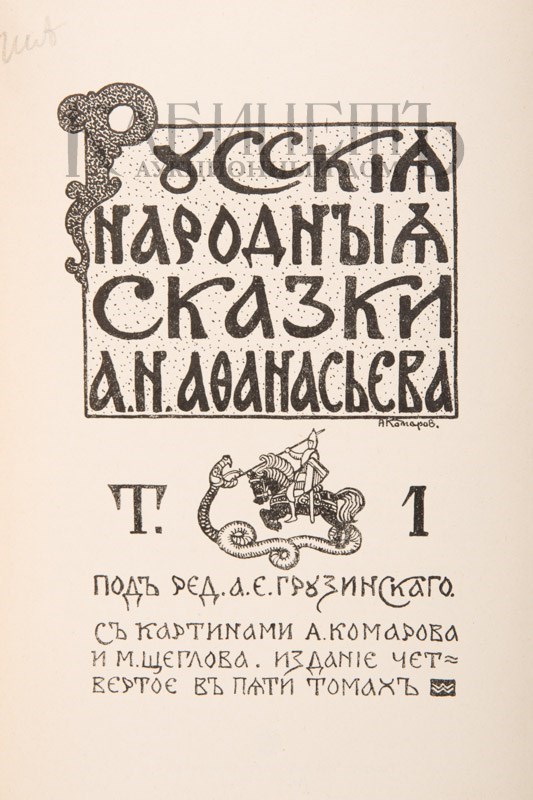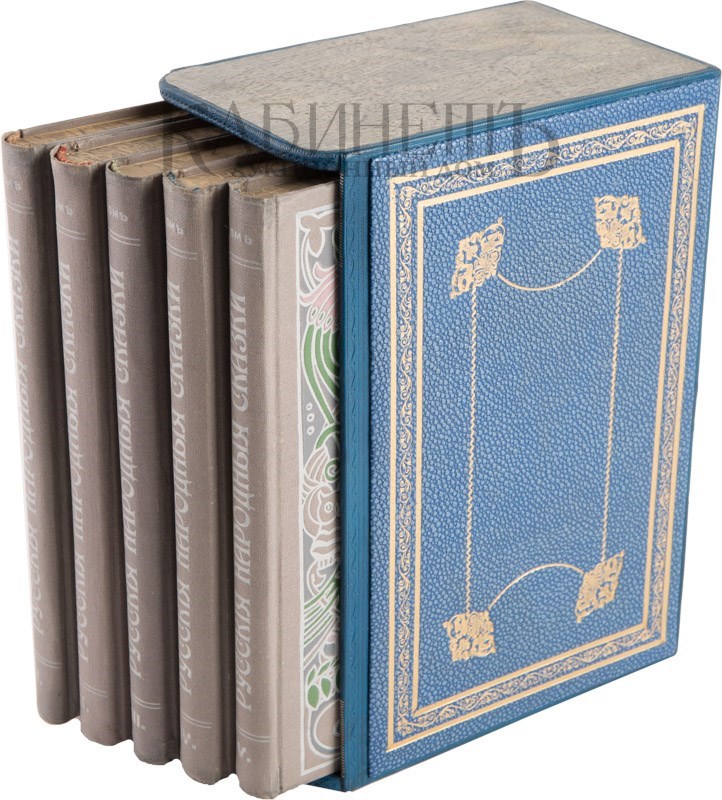 Экземпляр коллекционной сохранности в издательских коленкоровых переплетах с полихромным тиснением по рисунку А. Комарова. Мраморированные обрезы. Форзацы из бумаги геометрического орнамента. Современный составной футляр.