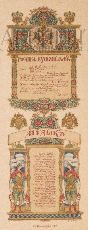 Меню и программа к празднованию 300-летия царствования Дома Романовых. Художник И. Билибин. СПб., Прокудин- Горский С.М., 1913.