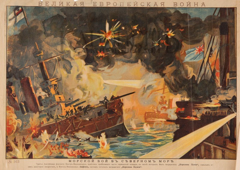 Лубочная картинка. «Великая европейская война. Морской бой в Северном море», Пг., Литография т\д А.П. Коркин, А.В. Бейдемве и Ко, 1914–1915.