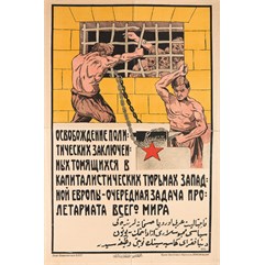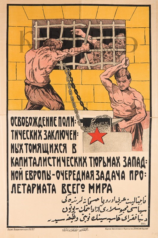 Плакат. Освобождение политических заключенных в капиталистических тюрьмах Западной Европы – очередная задача пролетариата всего мира. Баку, издание Кооперативного издательства «Бакинский рабочий», 1920-е гг.