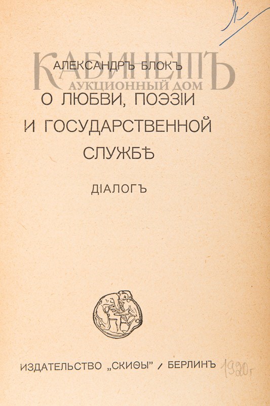 Блок А. О любви, поэзии и государственной службе. Берлин, издательство «Скифы», 1920.