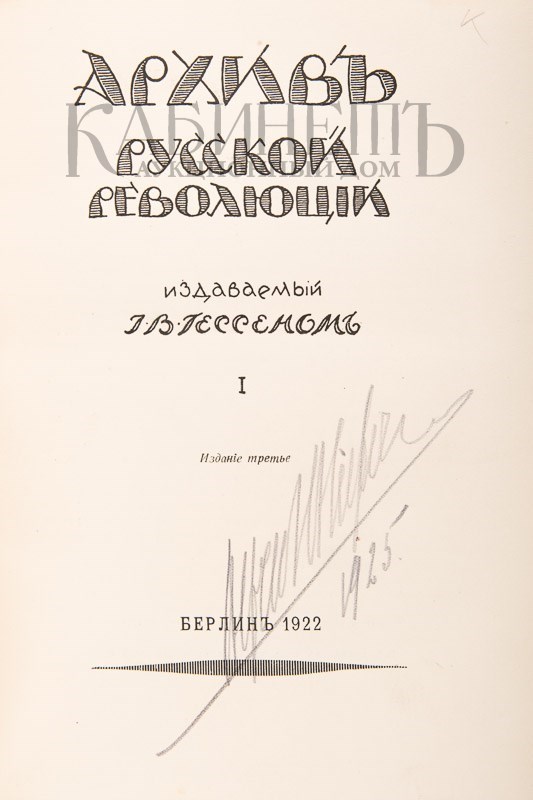 Архив русской революции – уникальное печатное издание, выходившее в Берлине в 1920–1930-х гг. Представляет собой белоэмигрантские сборники в 22-х томах, издававшиеся в Берлине лидером кадетов И. В. Гессеном с 1921 по 1937 годы, в которых публиковались воспоминания белоэмигрантов, материалы и документы, освещающие период Октябрьской революции и Гражданской войны.