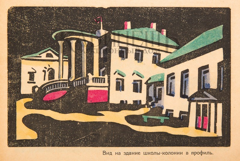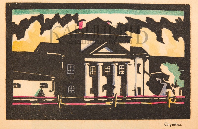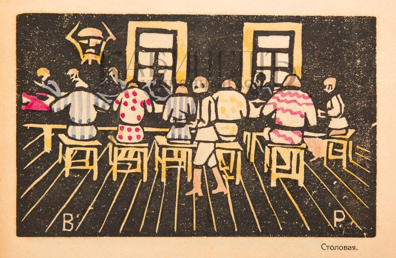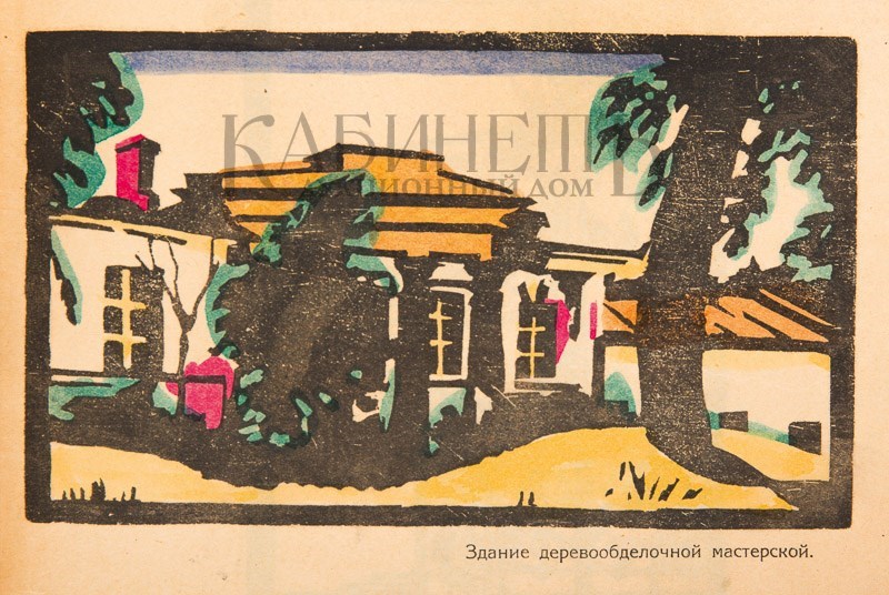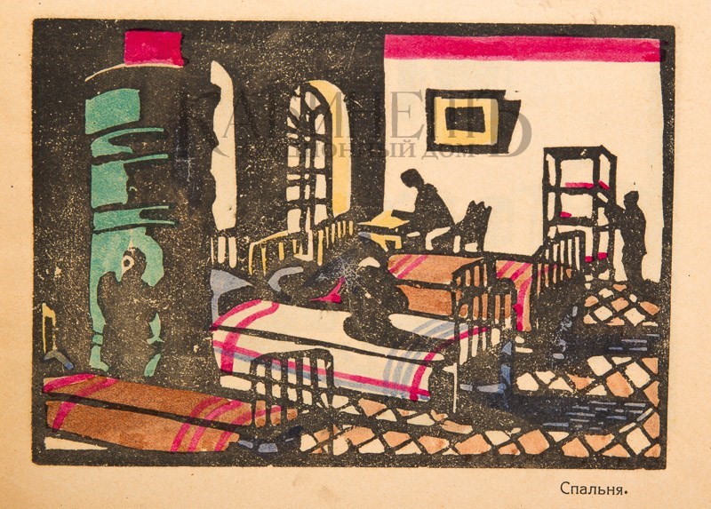 Альбом, состоящий из 25 литографий на линолеуме, раскрашенных вручную акварелью.