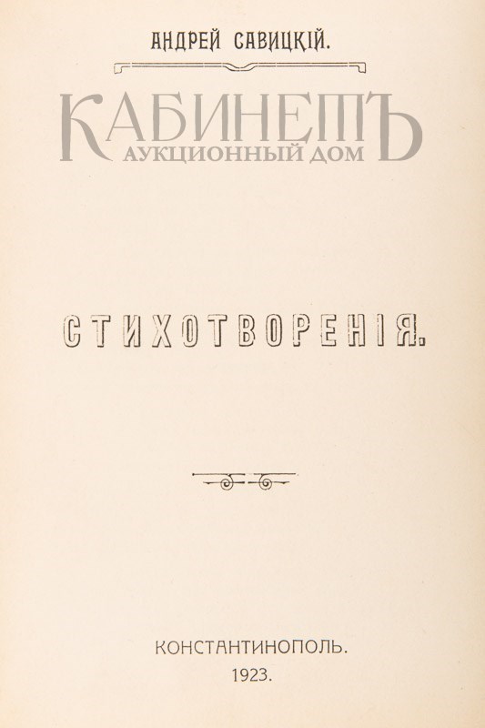 Савицкий А. Стихотворения. Константинополь, типография «Вечерней прессы», 1923.