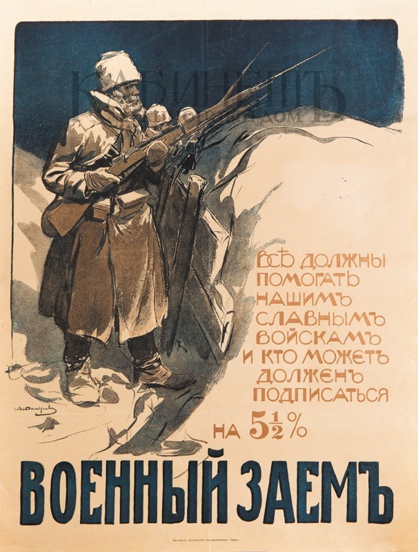 Плакат. «Все должны помогать нашим славным войскам и кто может должен подписаться на 5 ½ % военный заем». Художник И. Владимиров. [Пг.],Экспедиция заготовления государственных бумаг, [1914–1916].