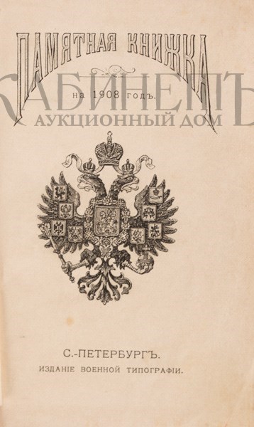 Памятная книжка на 1908 год. СПб., Издание Военной типографии, [1907].