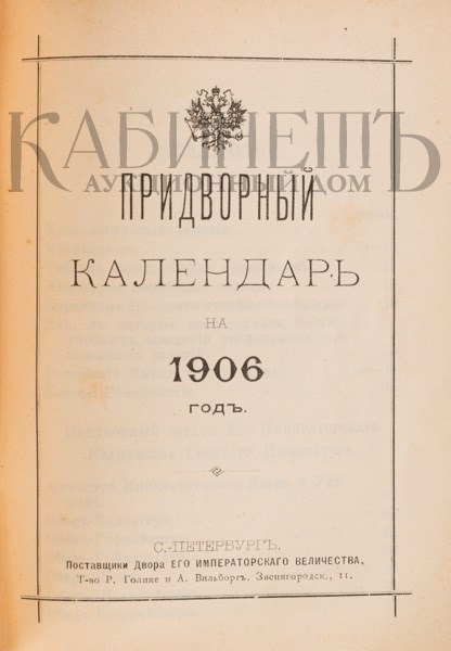 Придворный календарь на 1906 год. СПб., Товарищество Р. Голикеи А. Вильборг, [1905].