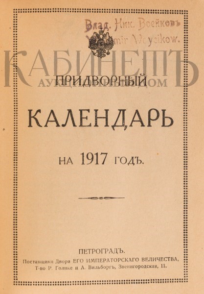 Золоченый обрез. На титуле штамповый экслибрис В.Н. Воейкова.