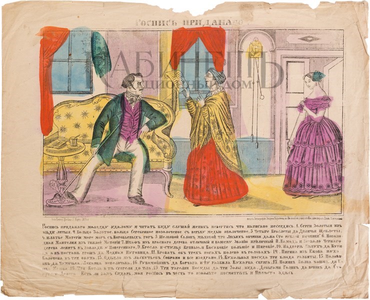 Лубочная картинка. Роспись приданого. М., печатано литографией А. Абрамова, 1874.