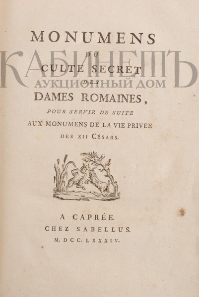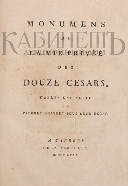 [Памятники уединения двенадцати цезарей. Памятники культовых секретов римлянок. Капри, 1780-1784]. В 2-х томах. Monumens de la vie privée des douze cesars. Monumens du culte secret des dames romaines. A Caprée, Chez Sabellus, 1780-1784.