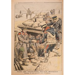 Архив аукциона №25(75) Лот 146 Dans les tranchees devant Moukden. Echange de bons procédés entre adversaries. № 32. Supplement illustre du Petit Journal.[Лубочная картинка. Русско-японская война. В окопах под Мукденом. Обмен передовым опытом между противниками.№ 32. Иллюстрация к газете «Маленький журнал», 1904–905].