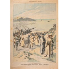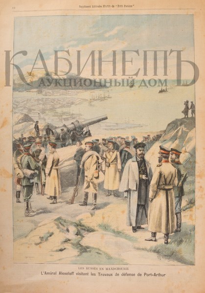 Архив аукциона №25(75) Лот 147 Les Russes en Mandchourie. L`Amiral Alexeieff visitant les Travaux de defense de Port–Arthur. № 40. Supplement illustre du Petit Parisien.[Лубочная картинка. Русско-японская война. Русские в Манчжурии. Посещение Адмиралом Алексеевым оборонительных сооружений в Порт–Артуре. № 40. Иллюстрация к газете «Маленький парижанин», 1904–1905].