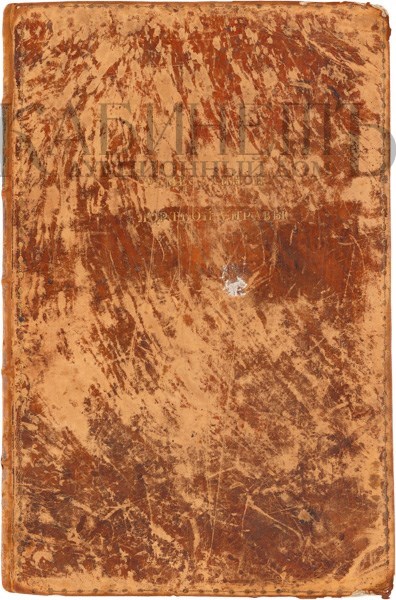 Экземпляр в старинном цельнокожаном переплете с остатками золотого тиснения по корешку и крышке, потертости переплета, следы от залистывания.