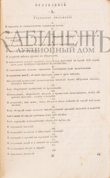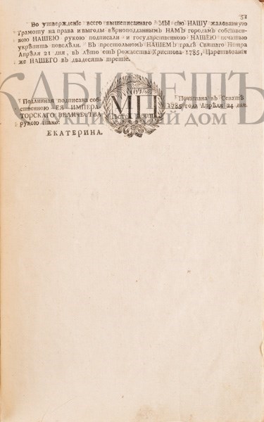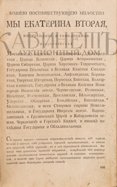 Первое Городовое положение – закон о городском самоуправлении в Российской империи, принятый на основании Жалованной грамоты городам – законодательного акта, изданного Екатериной II 21 апреля 1785 г. и регламентирующего правовой статус «городских обывателей». Грамота определила новые выборные городские учреждения, несколько расширив круг избирателей. Горожане были поделены на шесть разрядов по имущественным и социальным признакам: «настоящие городские обыватели» – владельцы недвижимости из дворян, чиновников, духовенства; купцы трёх гильдий; ремесленники, записанные в цехи; иностранцы и иногородние; именитые граждане; посадские люди – все прочие граждане, кормящиеся в городе промыслами или рукоделием. Фактически Жалованная грамота городам зафиксировала два сословия – купечество и мещанство. В соответствии с Грамотой в городах раз в три года созывалось собрание «градского общества», в которое входили лишь наиболее состоятельные горожане. Постоянно действующим городским органом была «общая градская дума», состоящая из городского головы и шести гласных. Судебными выборными учреждениями в городах являлись магистраты — органы сословного городского самоуправления, отдельно избирались суды для дворян и для городского населения.