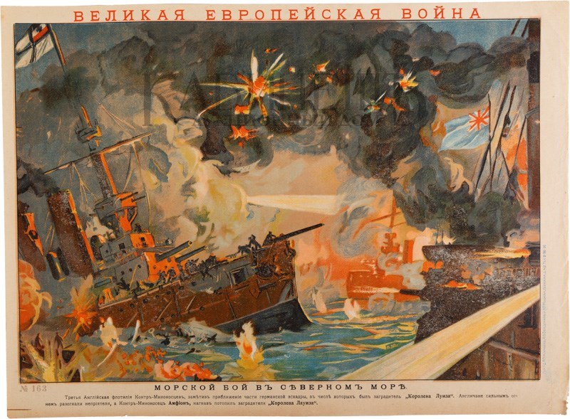 Лубочная картинка. Великая Европейская война. Морской бой в Северном Море. № 163. М., литография торгового дома А.П. Коркин, А.Б. Бейдеман и Ко, 1914 –1915.