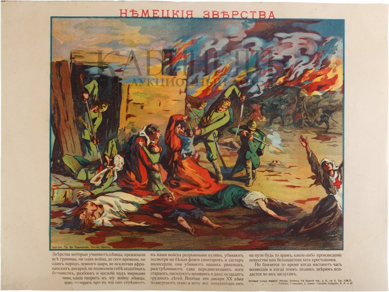 Лубочная картинка. Немецкие зверства. М., типо-литография т/д бр. Евдокимовы, 1914–1916.
