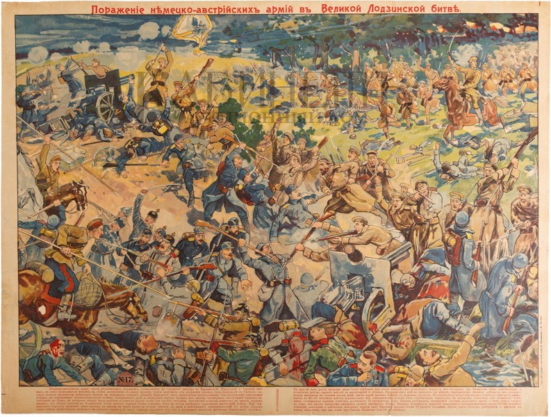 Лубочная картинка. «Поражение немецко-австрийских армий в Великой Лодзинской битве». № 17. М., типо-литография торгового дома Е. Коновалова, 1914–1916.