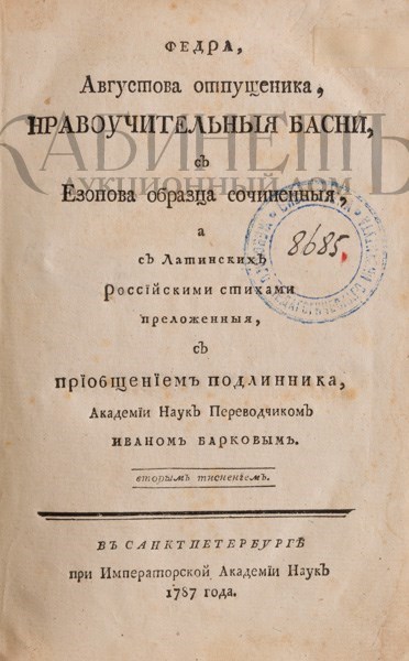 Переводчик книги – Барков Иван Семенович (1732–1768) – русский поэт, автор эротических «срамных од», переводчик Академии наук, ученик Михаила Ломоносова, поэтические произведения которого пародировал. Литературное наследие Баркова делится на две части — печатную и непечатную. К первой относятся: «Житие князя А. Д. Кантемира», приложенное к изданию его «Сатир» (1762), ода «На всерадостный день рождения» Петра III, «Сокращение универсальной истории Гольберга» (с 1766 года несколько изданий). Стихами Барков перевёл с итальянского «драму на музыке» «Мир Героев» (1762), «Квинта Горация Флакка Сатиры или Беседы» (1763) и «Федра, Августова отпущенника, нравоучительные басни», с приложением двустиший Дионисия Катона «О благонравии» (1764). Ко второй непечатной: «Срамные (шутливые) оды» Баркова и его современников, которые являются важной составляющей литературной жизни конца XVIII — начала XIX века. На произведения Баркова повлияла западно-европейская, прежде всего французская, фривольная поэзия, а также русский эротический фольклор.
