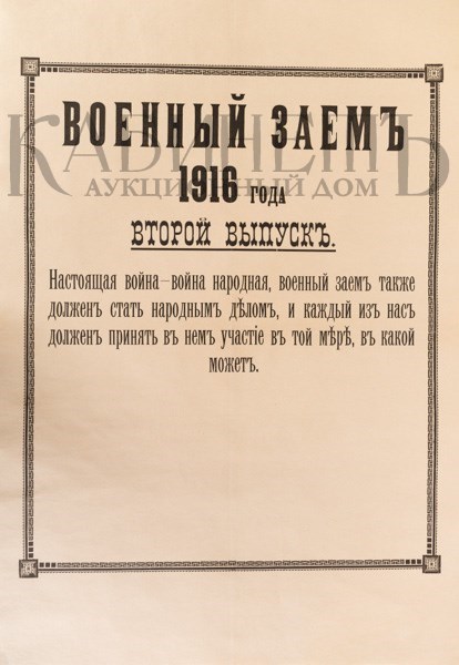 Плакат. Военный заем 1916 года. Второй выпуск. Настоящая война – война народа, военный заем так же должен стать народным делом, и каждый из нас должен принять в нем участие в той мере, в какой может. [Б. м. и., 1916].