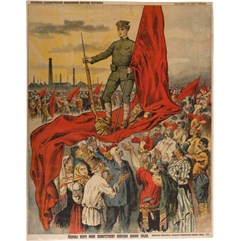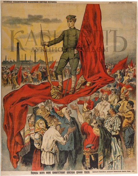 Плакат. «Народы всего мира приветствуют Красную армию труда». М., издательство ВЦИК, лит. Т-ва И.Д.Сытина, 1919.