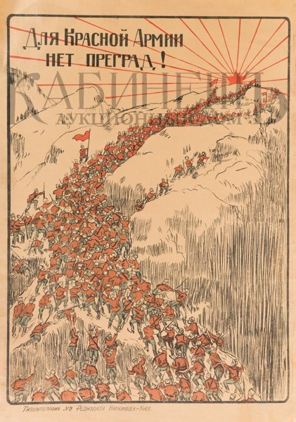 Плакат.«Для Красной Армии нет преград!» Киев, Редиздата. Наркомвоен.[УССР] типография № 2, [II–V 1919].
