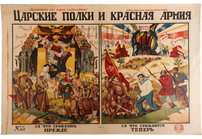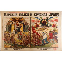 Плакат. Автор Д. Моор. «Царские полки и Красная армия. За что сражались прежде. За что сражаются теперь». №35. [М.], лит. Издат. Отд. Полит. Упр. РВСР, 1919.