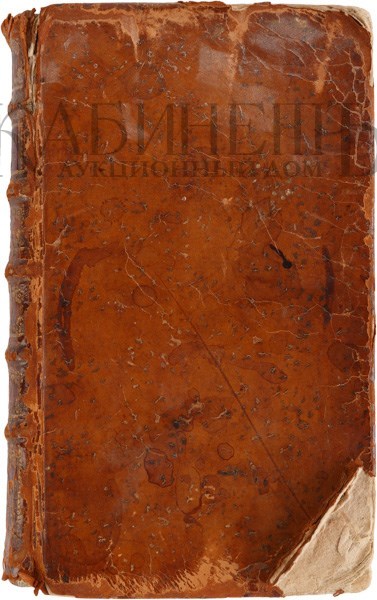 Экземпляр в старинном цельнокожаном переплете с золотым тиснением по корешку, кожа на верхней крышке отошла от уголка, надрыв на корешке.